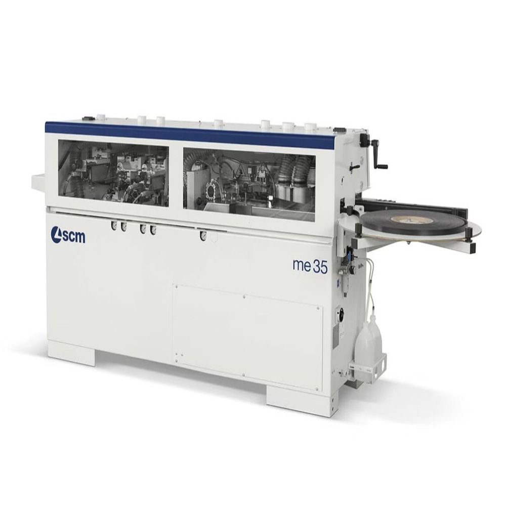 The SCM me 35t automatic edge bander offers the “very best” performance in edge banders at this level. The panel edge surface is without any imperfections before the gluing operation thanks to the pre-milling unit. It utilizes 2 diamond tools with opposing rotation and timed intervention that, through the removal operation, corrects any panel imperfections caused by the saw cutting process and panel storage. The special end cutting unit with radius function is equipped with a blade and a high frequency motor to provide the best finishing quality of the machined edge.